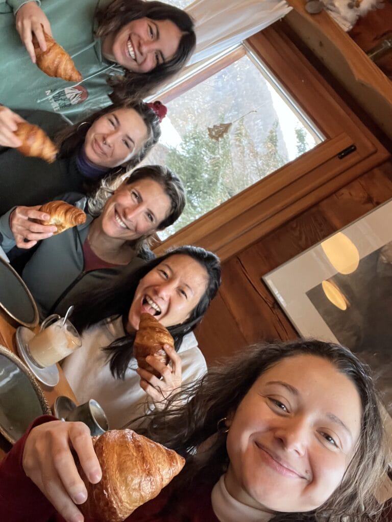 Those two months flew by in the blink of an eye. The days quickly found their rhythm and were packed with hikes, alpinism adventures, trail runs, climbing sessions, via ferratas, and plenty of spontaneous outdoor plans. Evenings often turned into shared meals, long discussions, and community events that brought everyone together after full days outside. We were lucky to host a particularly outdoorsy and active crew, and the least we can say is that there was never a dull moment during the week. The house was buzzing with energy, muddy shoes, tired legs, and very happy faces, exactly the kind of atmosphere we love.