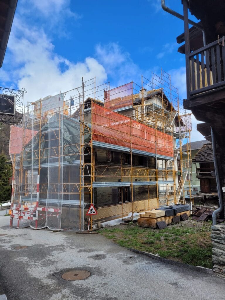 As much as we liked our house before, we have to admit it wasn’t really the most beautiful building of our village. But this turned out to be a chance for us 🙂 . All buildings in protected area like in our village are classified in fonction of their built heritage interest from 1 (very high interest) to 7. Our building was only classified 5 out of 7. Thanks to that we were allowed to actually insulate our property from the outside which would be forbidden for all buildings with a higher built heritage interest in Les Haudères. This presents a few advantages: